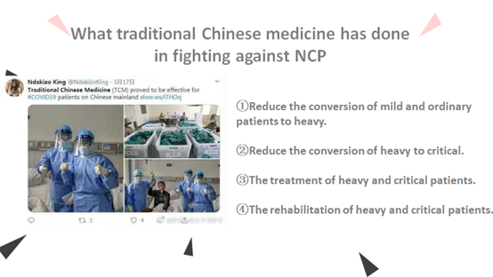 在《跨文化交际》课堂中,李品老师在讲解文化对于不同语境的影响时,特别针对医疗语境,布置学生通过presentation展示中医对于世界的影响,尤其是在这次新冠疫情防控中的影响力。同学们以制作精良、语料详实的幻灯片,生动、深刻地讲述了古老独特的东方医学及博大精深的中医文化在抗疫中的关键作用。这一课堂任务不仅调动了同学们学习语言、运用语言的热情,还大大提升了他们对中医为代表的中华文化的自信。