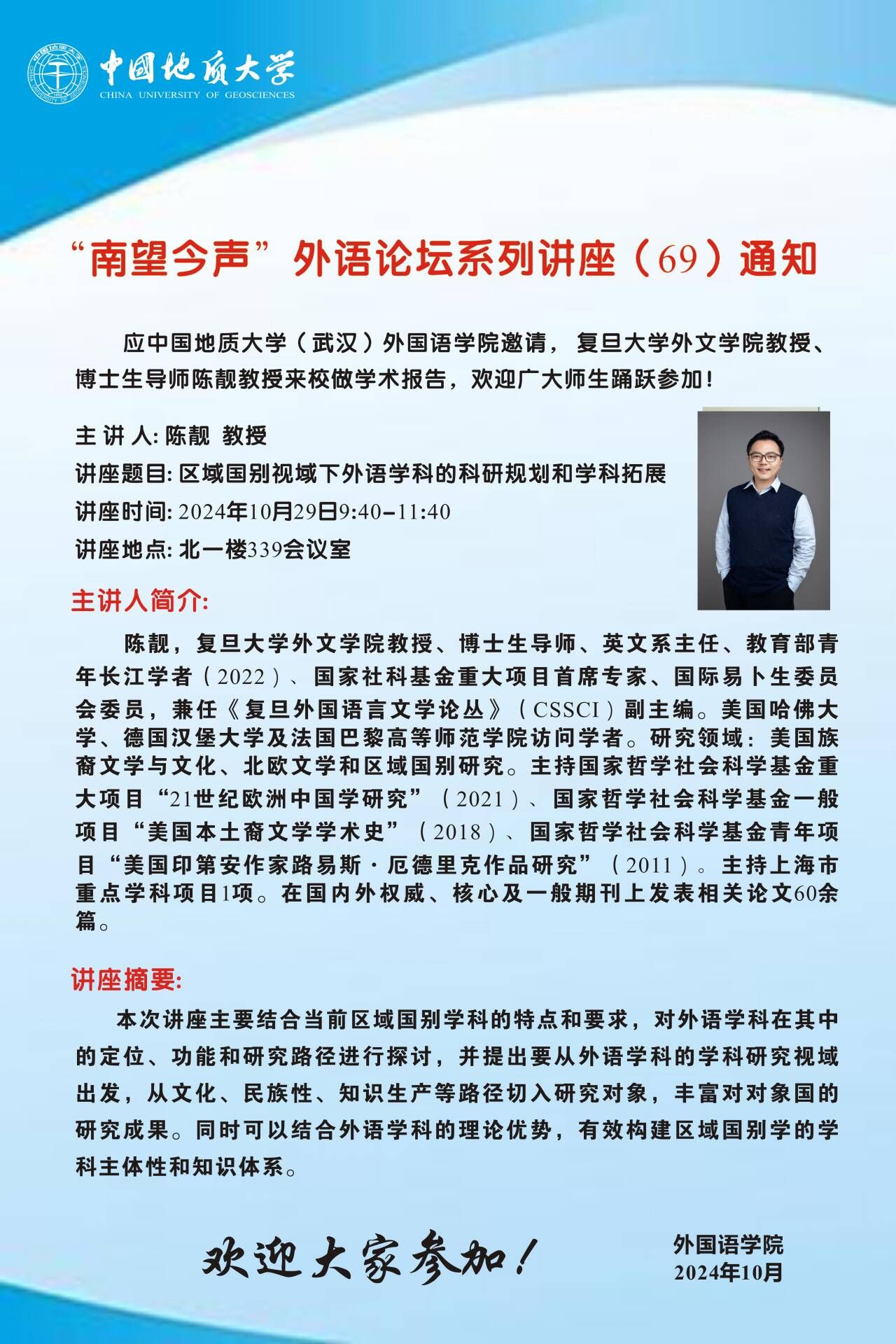 中国地质大学(武汉)2024年第24期名家论坛报道