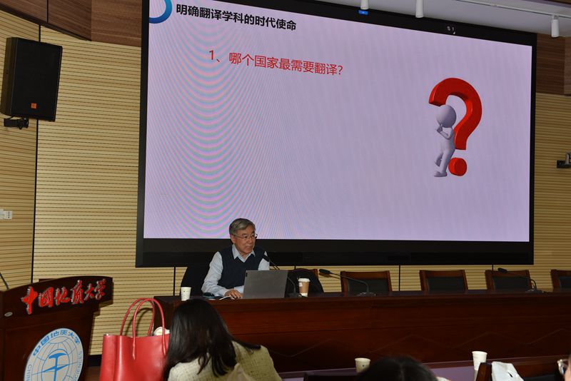 2024年10月24日下午14:30分,中国地质大学(武汉)2024年第24期名家论坛暨第68期“南望今声”外语论坛系列讲座在八角楼学术报告厅举行。著名翻译学家黄友义先生应邀来到德赢VWIN官方网站做主题为“以帮助海外受众理解为目标——谈谈中国话语的对外翻译”的讲座。此次讲座由王伟副教授主持,100余名相关专业老师以及研究生参加了本次讲座。
