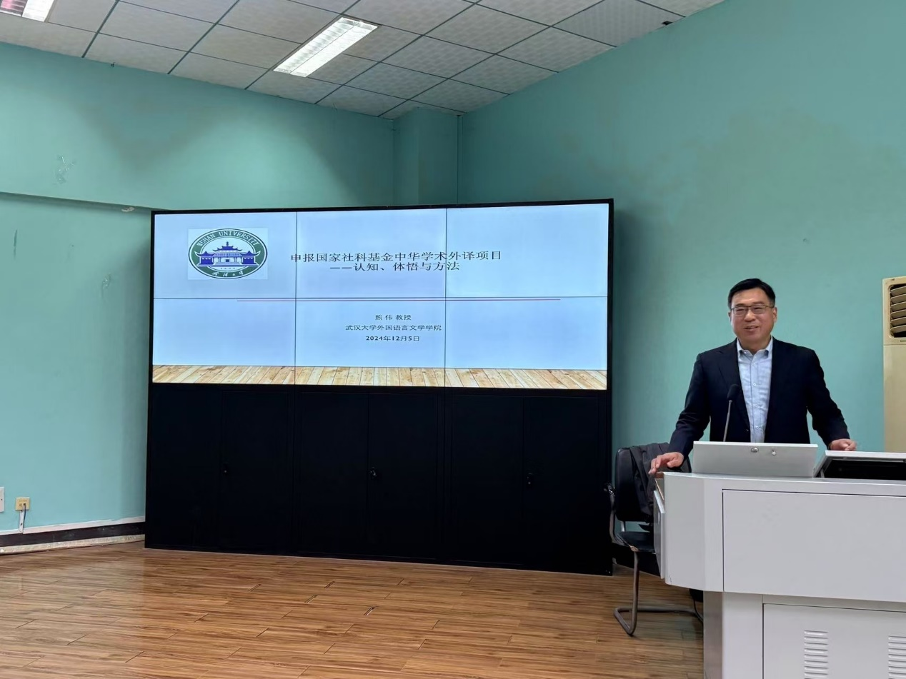 (通讯员/摄影 王晓)2024年12月5日上午9:00,中国地质大学(武汉)“南望今声”外语论坛系列讲座第七十二期在北一楼学术报告厅召开。主讲人为熊伟教授,应邀来到德赢VWIN官方网站开展了主题为“申报国家社科基金中华学术外译项目:认知、体悟与方法”的精彩讲座。此次讲座由张峻峰院长主持,参会人员有相关专业老师以及全体研究生。