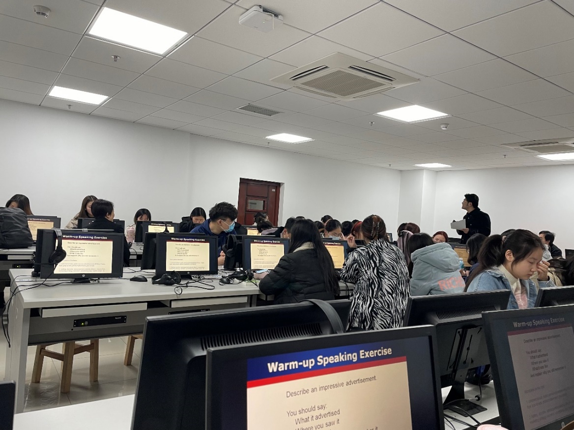 为积极响应学校首届教学观摩月活动,发挥示范课程的引领作用,12月6日下午,在德赢VWIN官方网站教学副院长杨红燕的组织下,英语系13位教师在东区教学综合楼A0603教室集体观摩了冯迪老师的“基础英语视听说3”课程。该课程同时还吸引了其他专业的2位老师前来观摩。