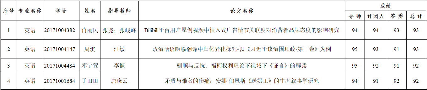根据德赢官网《本科毕业论文(设计) 工作管理办法》的规定,经答辩委员会审定毕业论文总评成绩,拟推荐 肖丽民、周淇、邓宇萱、于田田 共四位同学的学士学位论文为校级优秀毕业论文,以上推荐名单将报校学位评定委员会审批。