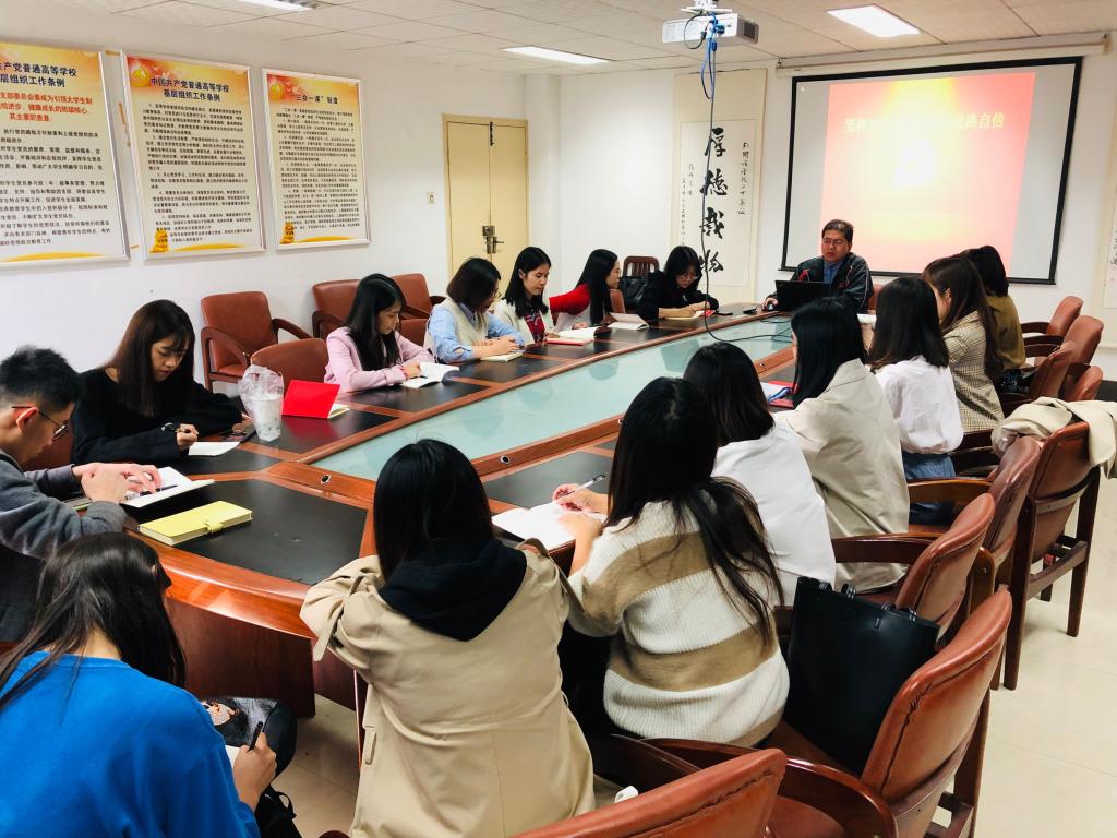 2019年10月29日下午2:30,德赢VWIN官方网站“不忘初心·牢记使命”主题教育系列党课在北一楼339正式开讲,学院党委副书记胡文勤为全院研究生党员讲授了题为“坚持社会主义,增强道路自信”的党课。