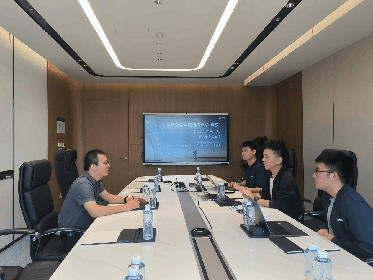 团队一行还参观走访荣耀终端全球总部和深圳市蓝天教育培训学校等两家企业。在荣耀终端,公司招聘经理赵智勇详细介绍了荣耀终端发展历程和人才理念,2024届毕业生唐湘林分享了一年来在荣耀工作的经历和收获,他在分享中提到“艰苦朴素,求真务实”的校训精神是他工作中踏实学习、务实发展的动力源泉,快速调整、快速适应、快速反应是他能不断成长的重要因素,他期待更多的学弟学妹加入荣耀。双方就校企人才培养模式与岗位能力适配性进行了深入探讨,余尚蔚代表学院感谢企业对学院毕业生的培养,并邀请企业秋招到学院开展就业育人和校园招聘。