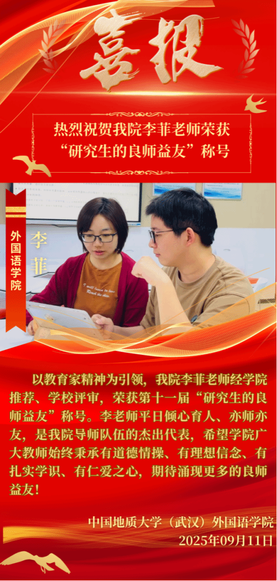 李菲,女,1985年10月出生,中共党员,先后于英国爱丁堡大学、华中科技大学、美国乔治城大学深造,现任德赢VWIN官方网站副教授、硕士生导师,中国地质大学第三届青年科协委员,研究方向为外语教育与语言学。自2018年起,李菲副教授在德赢VWIN官方网站任教,担任多层次英语教学任务,包括本科、硕士和博士等多个学术层次的教学工作。她主讲《英语语言学及语言研究方法》等课程,致力于推动外语教育与语言学研究的深度融合,并将最新的学术成果应用于教学中,为学生的学术发展和职业成长提供有力支持。