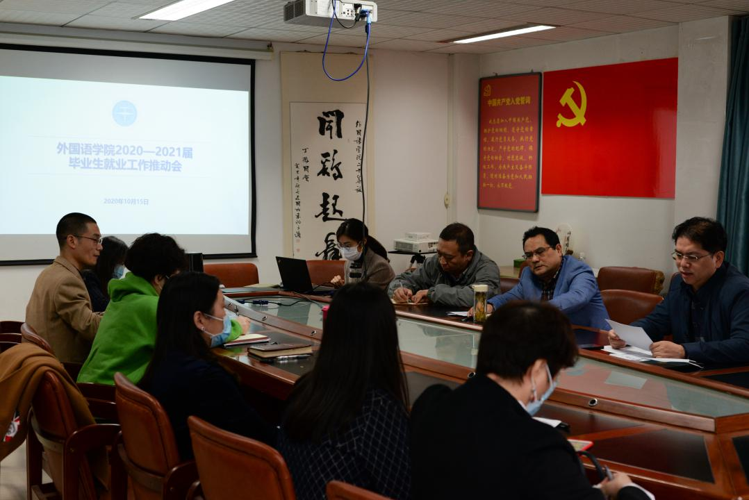最后,学院党委书记张基得对学院就业工作提出三点要求:一是要认清形势、高度警惕,学院将继续把就业工作列为学院工作的头等大事,继续花大力气推动就业工作。二是要聚焦问题、全员合力,全院老师都应充分发挥作用,针对当下学生就业思想问题,进一步凝聚学生共识。三是要发展学生特色、强化人才张力,要认识到英语专业学生的特点,进一步彰显特色,并引导学生发挥专业优势,强化在就业市场中的竞争力。