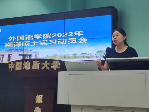 6月24日下午,德赢VWIN官方网站在北一楼报告厅召开翻译硕士实习动员会。德赢VWIN官方网站副院长杨红燕老师,研究生教育中心主任王伟老师,研究生教育中心秘书金虹老师,研究生辅导员李海涵老师以及2021、2020级翻译硕士研究生参加本次会议。会议邀请了学院研究生联合培养基地北京科译翻译有限公司武汉分公司的培训部经理郭晶晶女士和人力资源部副经理李媛女士作为嘉宾。