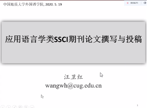 (通讯员 朱迪迪)5月21日下午两点十分,“南望今声”外语论坛系列讲座第十三期如期举行。汪卫红博士进行了题为“应用语言学类SSCI期刊论文撰写与投稿”的线上学术讲座,此次讲座由德赢VWIN官方网站张伶俐副院长主持,张基得书记以及全院七十多名师生参与学习交流。