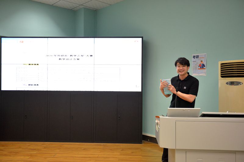 院长张峻峰首先做了发言。张院长肯定了学院教师在教学竞赛和慕课建设等方面取得的成绩,希望老师们能够保持教育教学改革的良好势头,在教育教学中打造外语人的拳头产品。接下来,姚夏晶、任晴、吴雅琪、冯迪等四位老师跟大家分享了自己参与教学大赛和课程建设的案例。