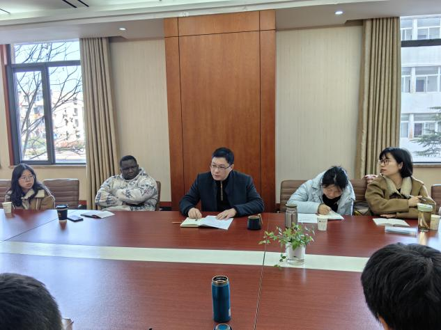 3月7日上午10:00,德赢VWIN官方网站党委副书记余尚蔚,学工组邹蔚鹤、彭赞美、郭文静、蒋贝蓓,学生会、研究生会、译术行者团队和“一带一路”宣讲团学生代表赴国际教育学院交流座谈,国际教育学院副院长许峰,国际学生事务办公室杨素,留学生辅导员大明等参加座谈会。许峰主持交流座谈会。