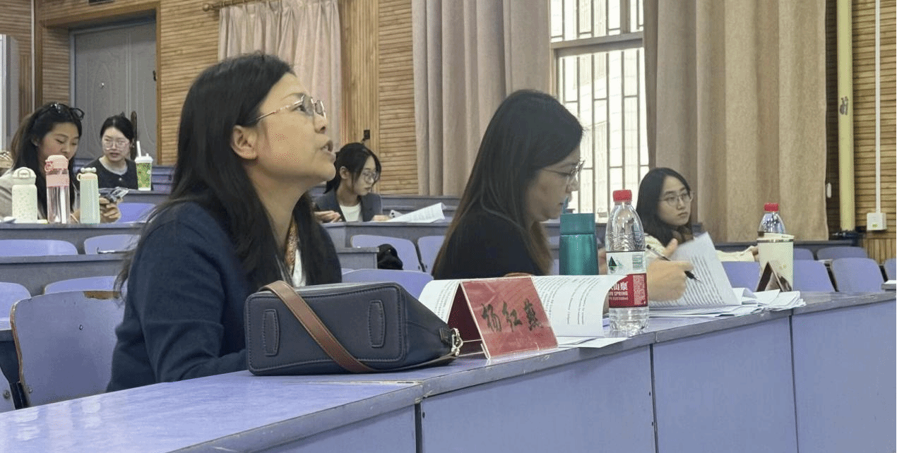 答辩环节结束后,杨红燕代表评审组作总结发言。她指出,本届科报会整体呈现“选题前沿、方法规范、应用性强”的特点,同时也提醒同学们在理论深度、数据支撑等方面仍需加强。她充分肯定各团队既能扎根翻译学、语言学与跨文化传播的理论根基,又能敏锐把握技术变革与社会需求,展现出外院学子的创新活力与实践智慧。她希望同学们在今后的研究中,题目突出亮点、方法科学严谨、格式规范统一,在反复打磨中提升学术素养,力争在更高平台展现外院学子的科研实力。