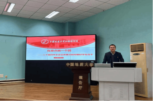 在随后的“语翼”团校第一课中,余尚蔚面向全体学员宣讲二十届四中全会精神,他从全会提到的“人民”“全面”“现代化”“高质量”“发展”等8个高频词出发引导学员思考高频词背后蕴含的深意,从五个切入点把握全会的精神。他指出,全会的目标任务是对新时代青年成长成才的召唤,是需要包括全体团学骨干在内的大学生厚植家国情怀、练就过硬本领、扎实奉献实践才会实现的。他强调,团校是培养团员骨干的重要阵地,是共青团为党育人、为国育才的关键一环。围绕这一培养目标,学生骨干要以坚定理想信念为根、以服务奉献为本、以自我锻炼为途,做到“有魂”、“有心”、“有心”、“有根”、“有为”。要强化思想政治觉悟,做坚定信念的引领者;提升沟通协作能力,做组织发展的推动者;明晰自身定位、坚守责任担当,激发内生动力、追求卓越实效。他希望,学员们要珍惜学习机会,在服务同学的实践中不断拓展自身成长的“圆”,以实际行动绘就新时代德赢VWIN官方网站团学骨干画像,努力成长为有品德、有品质、有品位、具备全球胜任力的时代新人。授课最后,他对全体学生党员和骨干提出要以更高的标准、更严的要求、更实的行动提升自己,努力在遵规守纪方面作表率;要提高鉴别能力、增强防范意识、提高斗争本领、加强警示提醒,努力在防诈骗和守安全方面做榜样示范和教育服务。