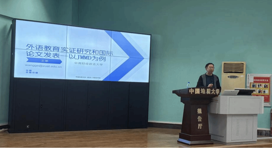 (通讯员:王可可 摄影:于鑫鑫、王子妍)2025年11月13日14:30,德赢VWIN官方网站“南望今声”外语论坛系列讲座第77期在北一楼学术报告厅举行。中南财经政法大学王革教授应邀莅临德赢VWIN官方网站,作题为“实证研究和国际论文发表:以国际核刊JMMD为例”的学术讲座。德赢VWIN官方网站张伶俐副院长主持讲座,师生共100余人参与学习交流。